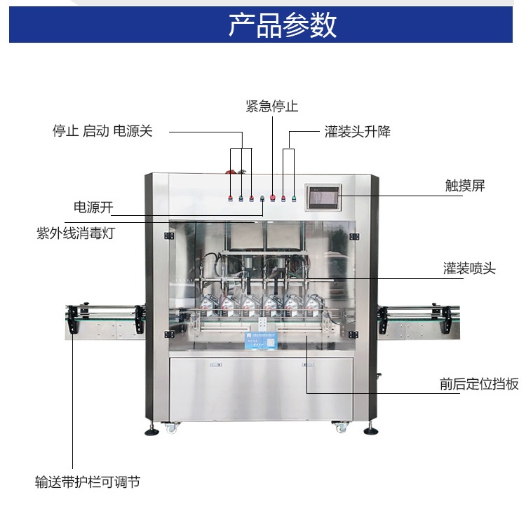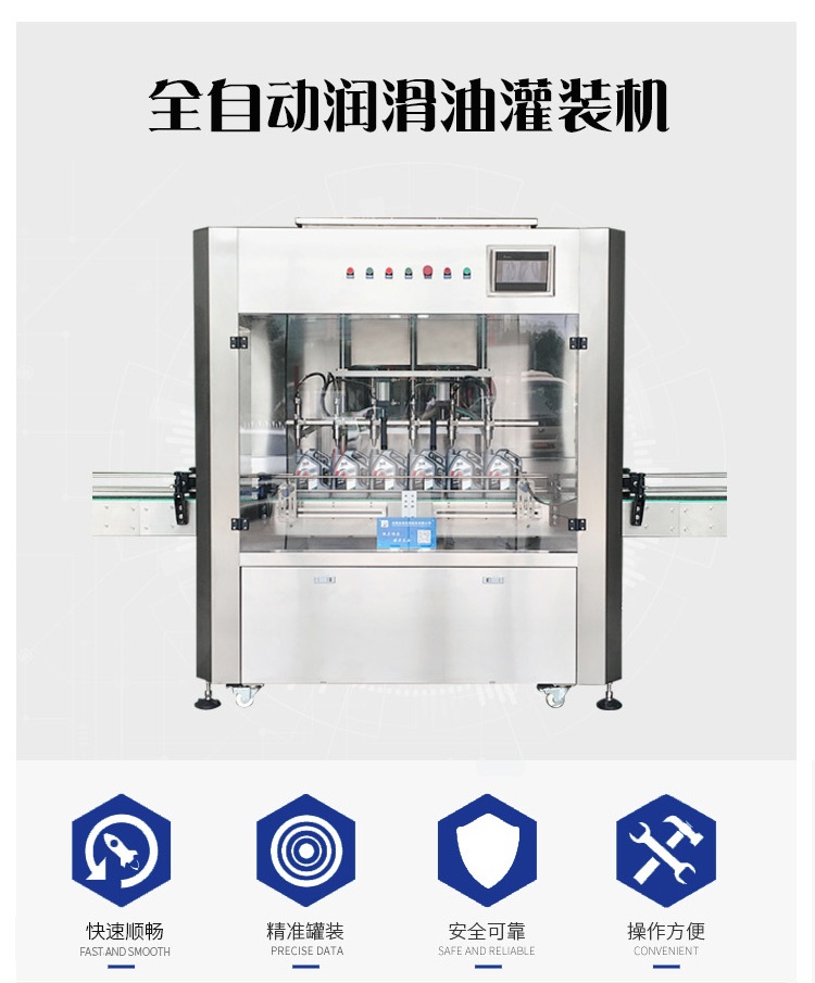 該六頭柱塞式全自動潤滑油灌裝機獨特的灌裝頭設計及真空回吸系統(tǒng),確保灌裝過程無殘油滴漏,快慢雙速灌裝,灌裝速度可調,杜絕溢瓶現(xiàn)象。