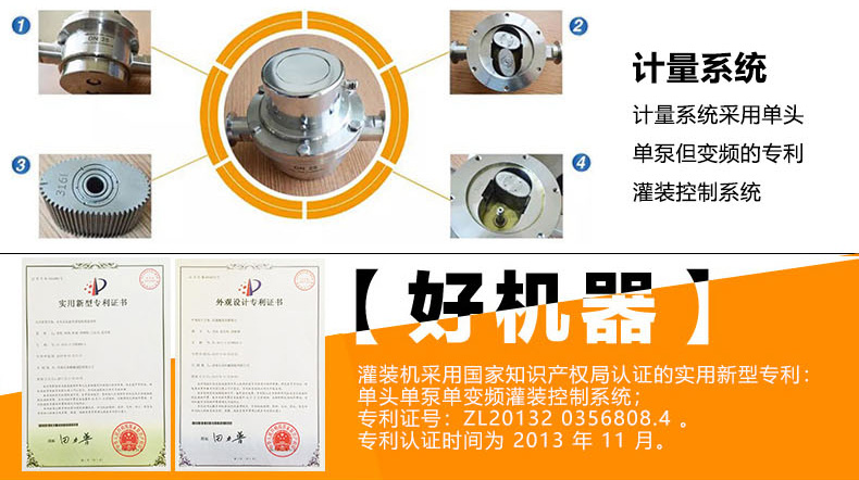 該系列灌裝機(jī)采用流量計(jì)式計(jì)量灌裝原理,多項(xiàng)認(rèn)證,適用于各種規(guī)格(1-5升)的南瓜籽油、榛子油、牡丹籽油、芝麻油、核桃油、山茶油、亞麻籽油、棉籽油、橄欖油、大豆油、玉米油、菜籽油等食用油灌裝。設(shè)備采用高精的旋轉(zhuǎn)編碼器計(jì)量,保證了1%o的灌裝精度,在保證灌裝精度的同時,提高了20%-35%的灌裝速度,操作簡單,維護(hù)方便,節(jié)省人工成本,生產(chǎn)效率更高。