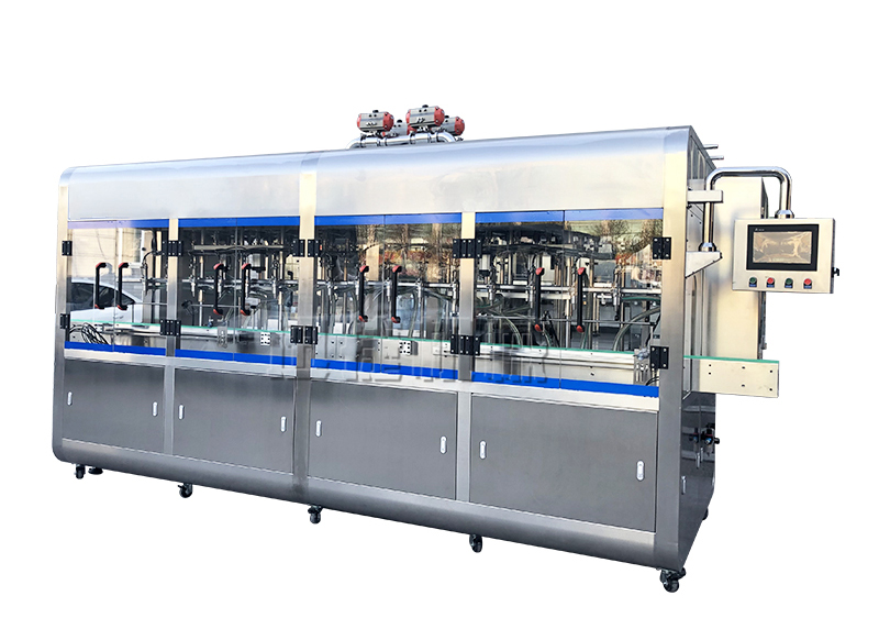 灌裝機儲油箱部分與灌裝機連接法蘭保持原位置,避免沖洗,避免雜質(zhì)進入;儲油箱容積≥600KG,內(nèi)部設(shè)有阻擋板,避免油品輸入過程油品外冒,同時保證灌裝精度;儲油箱位置設(shè)在灌裝機頂部,自帶可視液位計,頂部箱蓋大包圍設(shè)計并且可以打開,具備排氣功能(排出氣泡等);灌裝頭整體上升方式平穩(wěn),不產(chǎn)生震動,高度及寬度可調(diào)。