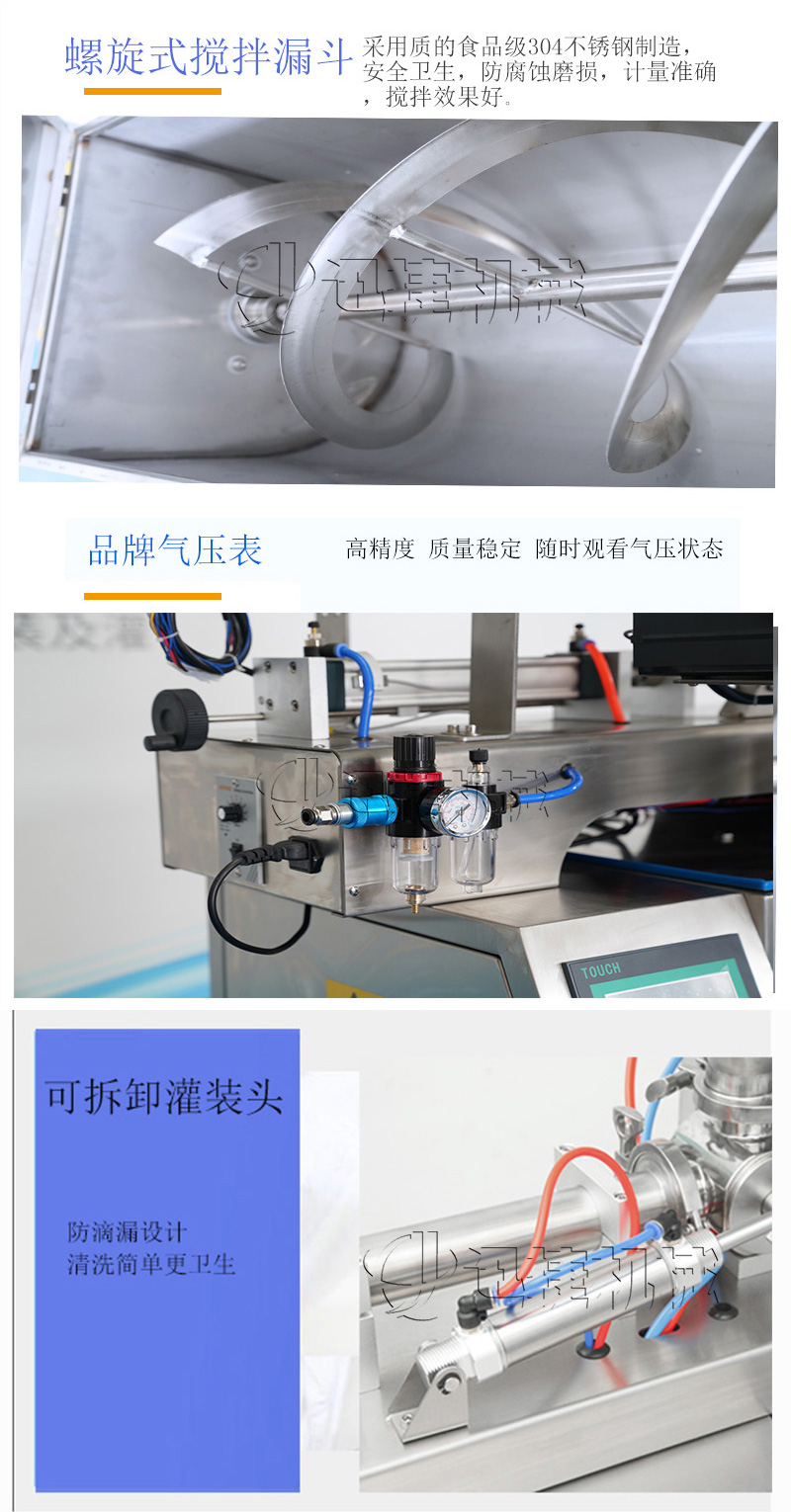 6.醬料灌裝部分加攪拌帶保溫料斗