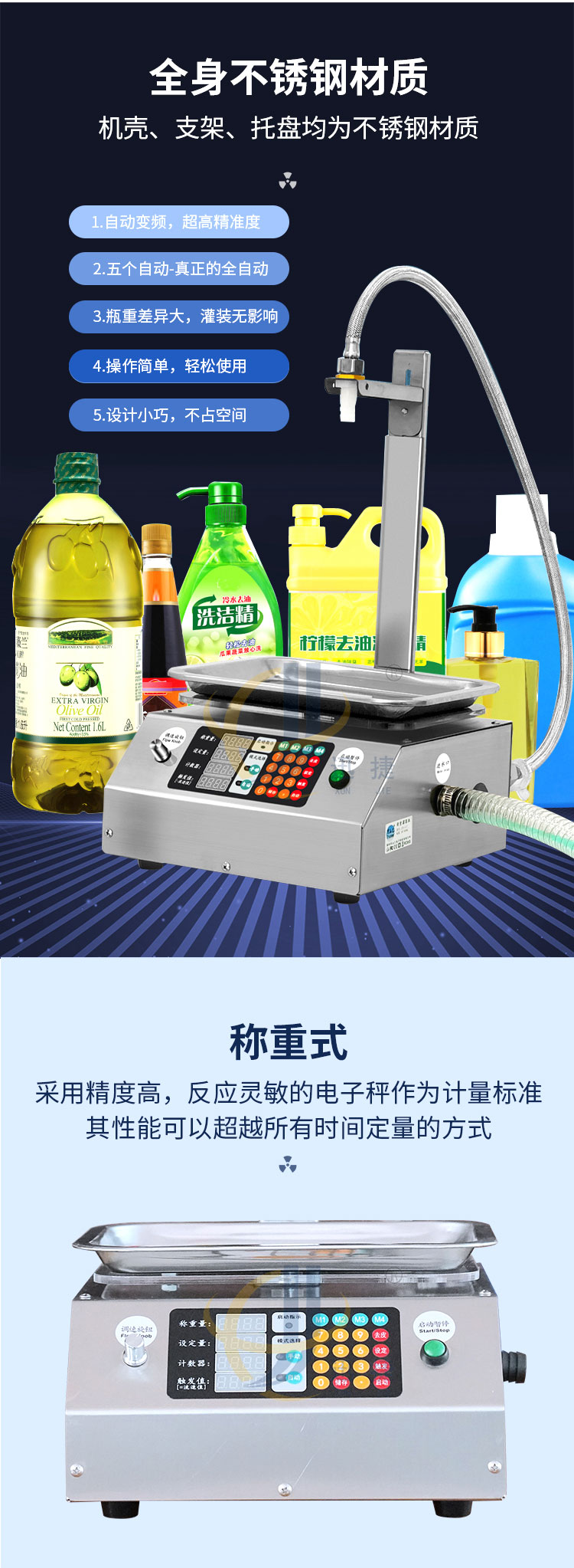 稱重式液體灌裝機(jī)適用于30g-15kg內(nèi)的各種常見(jiàn)液體灌裝。采用精度高,反應(yīng)靈敏的電子秤作為計(jì)量標(biāo)準(zhǔn)。其性能可以超越所有時(shí)間定量的方式。